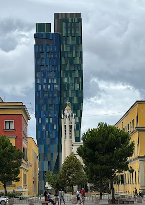 Colourful ultramodern towers and this beautiful Catholic church would have been inconceivable in Hoxha's Tirana.